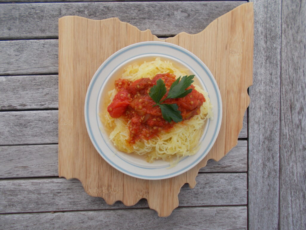 Whether its Friday night at the high school, Saturday at The Shoe or Sunday morning at the Muny Lot – Northeast Ohio football season has arrived! Lucky enough to end summer with a bounty of fresh tomatoes? We’ve got you covered with this easy and delicious fresh tomato sauce recipe, served here atop spaghetti squash.
